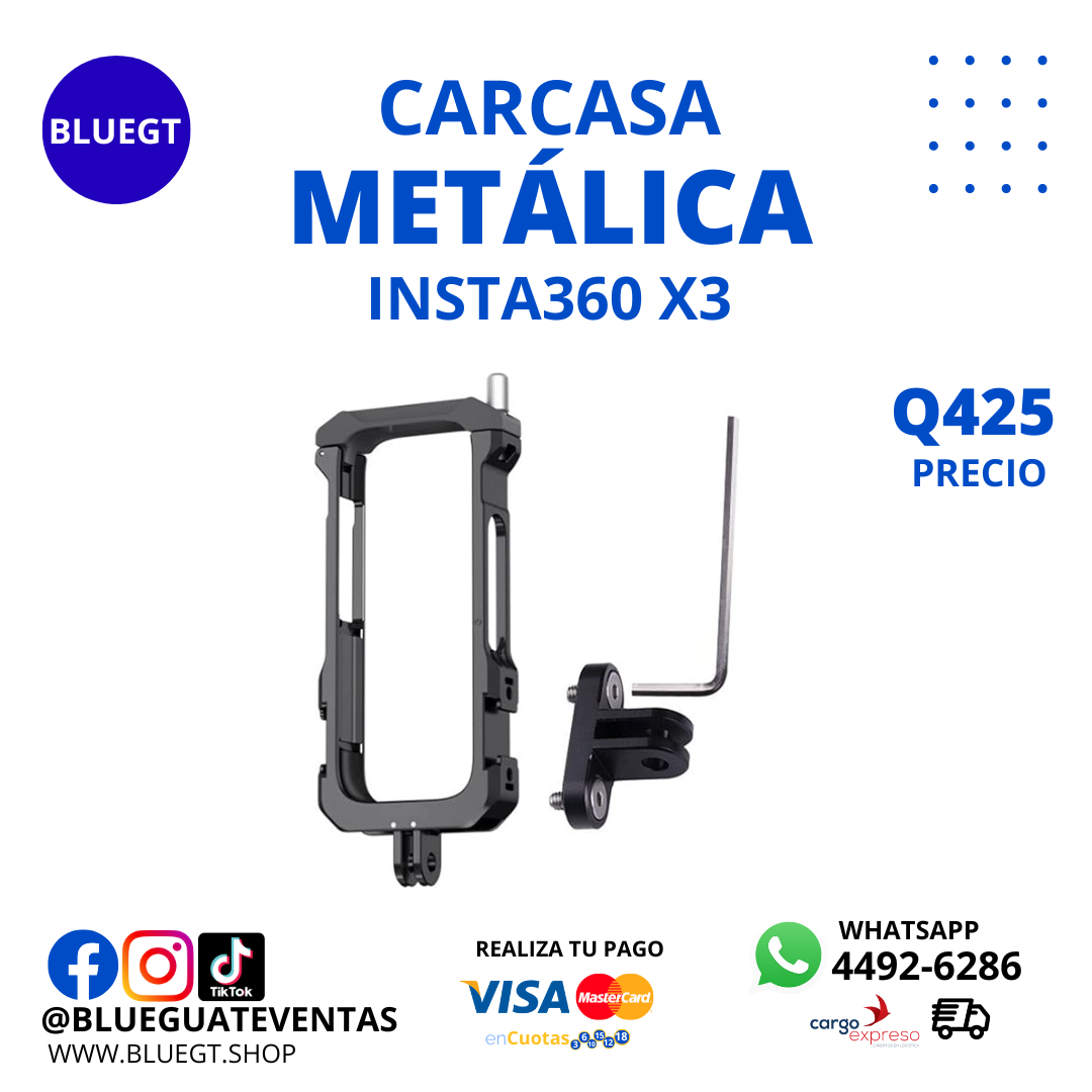 La carcasa metálica para Insta360 X3 proporciona una mayor protección y durabilidad a tu cámara. Hecha de metal de alta calidad, esta carcasa protege tu cámara de impactos y arañazos mientras grabas tus aventuras. Además, su diseño ligero no añade peso extra a tu cámara.